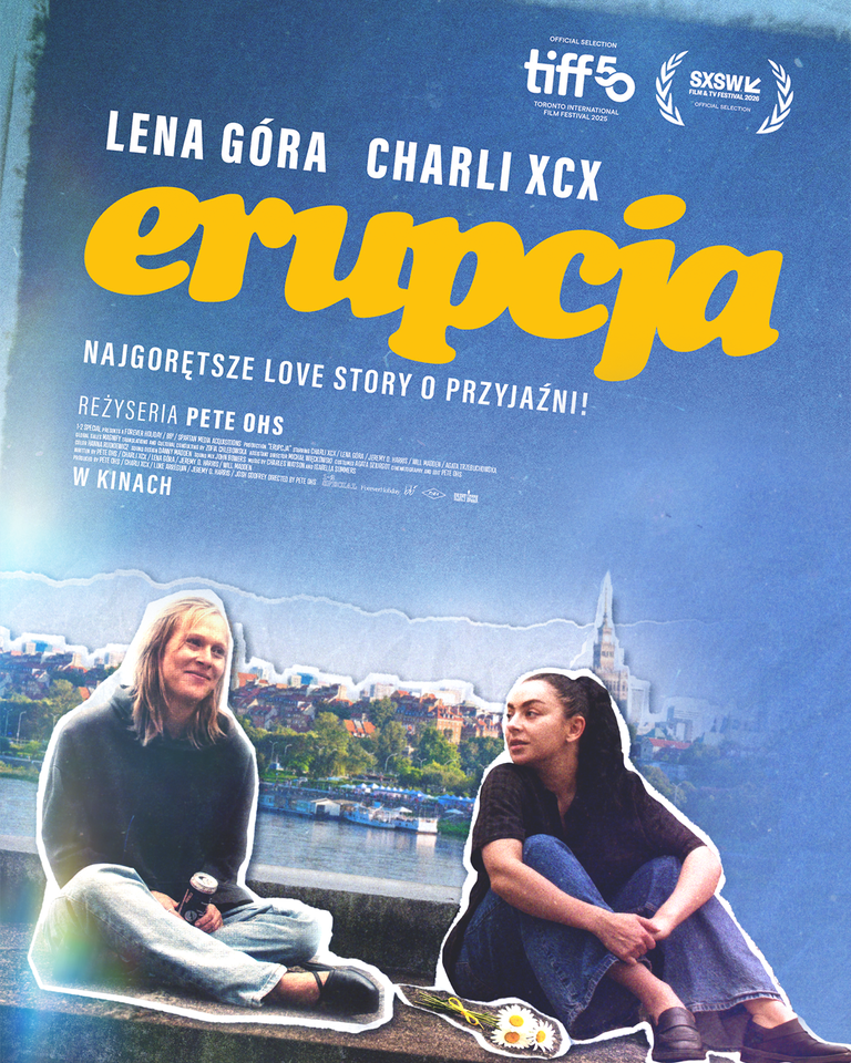 „Erupcja” to intymna i szalona opowieść o spotkaniu, które zmienia wszystko, a jednocześnie filmowy list miłosny do Polski. Reżyser Pete Ohs portretuje Warszawę jako miasto twórczej energii i wolności. W roli Bethany występuje światowa gwiazda Charli XCX, która wnosi do filmu swoją charakterystyczną wrażliwość i ekranową charyzmę. Partneruje jej Lena Góra – jedna z najważniejszych aktorek młodego pokolenia, współtwórczyni projektu i emocjonalne serce „Erupcji”.